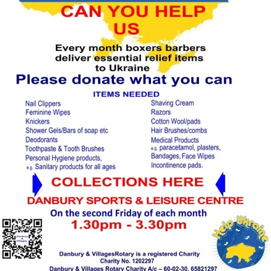 Danbury & Villages Rotary assist by transferring the items donated over to Boxers Barbers in Wickford.