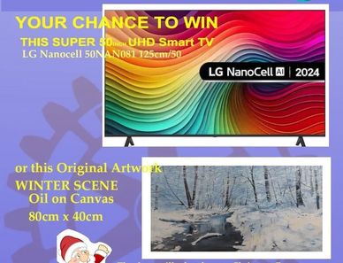 The Danbury and Villages Christmas Prize Draw gives the chance to win an LG 50inch Nanocell Smart TV or an original 800 x 400mm winter scene artwork.